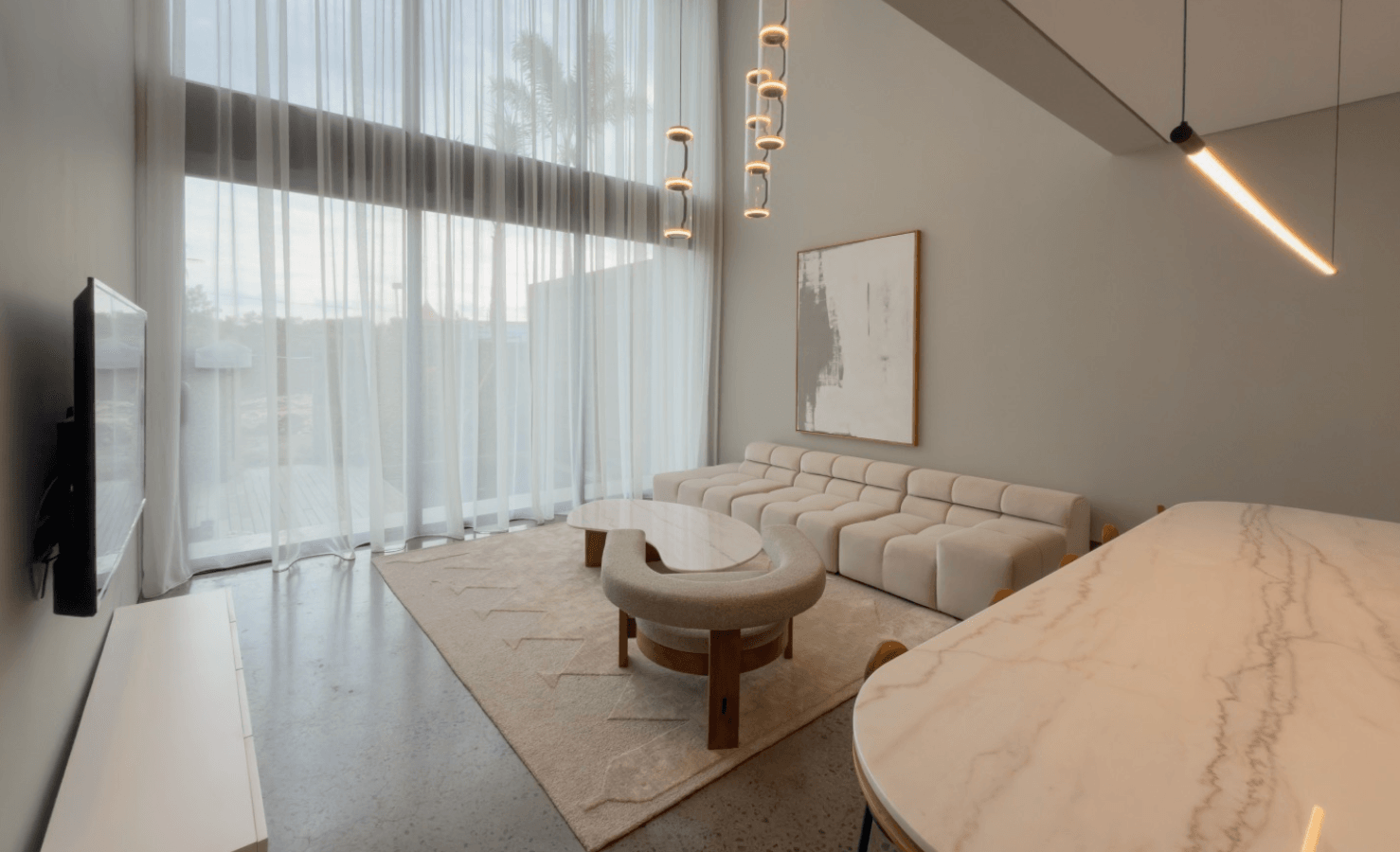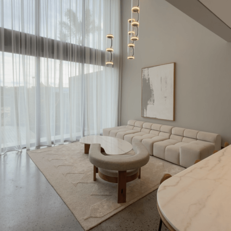 The residential zone id buffered from the main road by a two-storey lifestyle block that houses a 24/7 reception and lounge hall, restaurant, modern gym, co-working with podcast studio, spa, and underground parking.