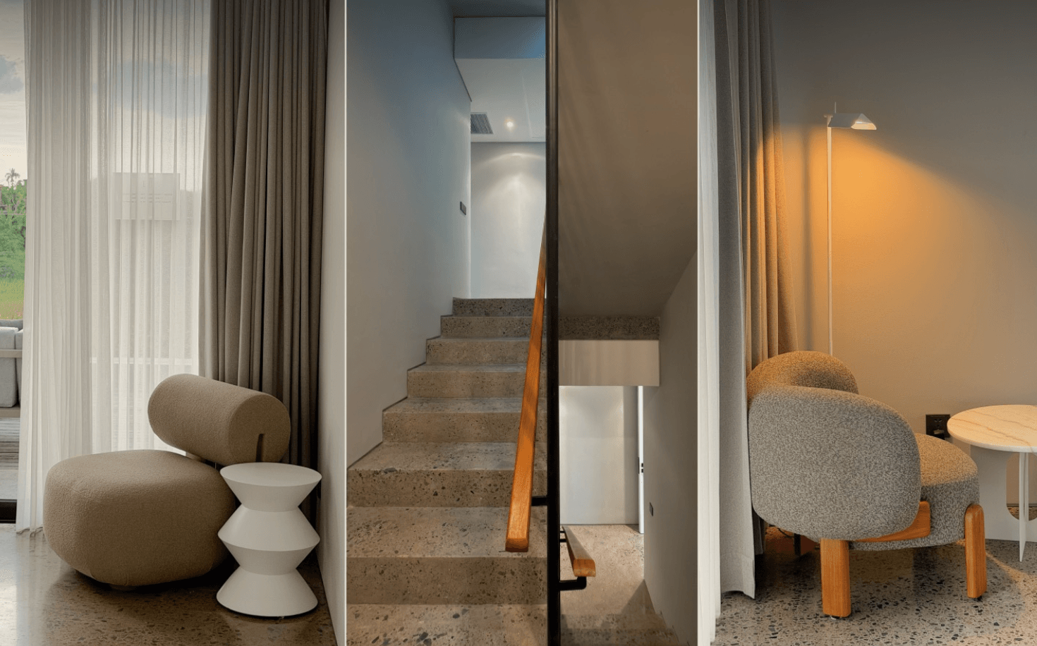 Apartments are divided into two blocks: the front block with Ricefield, volcano, and garden views; and the back block offering stunning river, pool, and lush jungle panoramas. Townhouses rise up to two-three floors and feature two private gardens and private pools. The elevated shared pool sits 6 meters above the road and overlooks the river.
