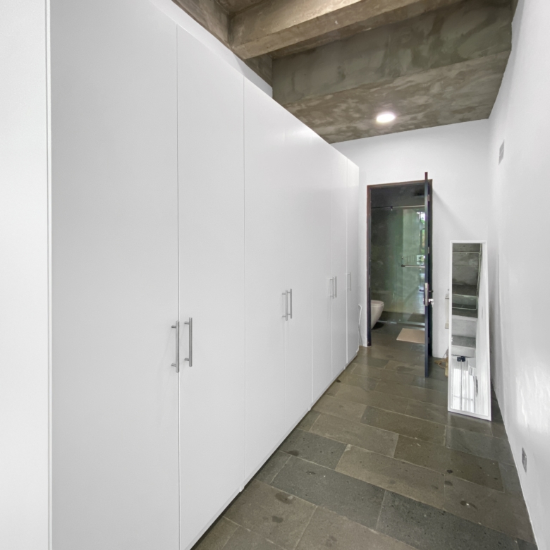 Set on a 2.6 are plot (260m2) with a 287m2 build, the villa offers an ideal balance of spacious living and intimate privacy. Inside, you’ll find three elegant bedrooms, each with its own wardrobe room and three and a half luxurious bathrooms. The expansive living room opens onto a huge terrace, perfect for entertaining or relaxing amidst tropical breezes.