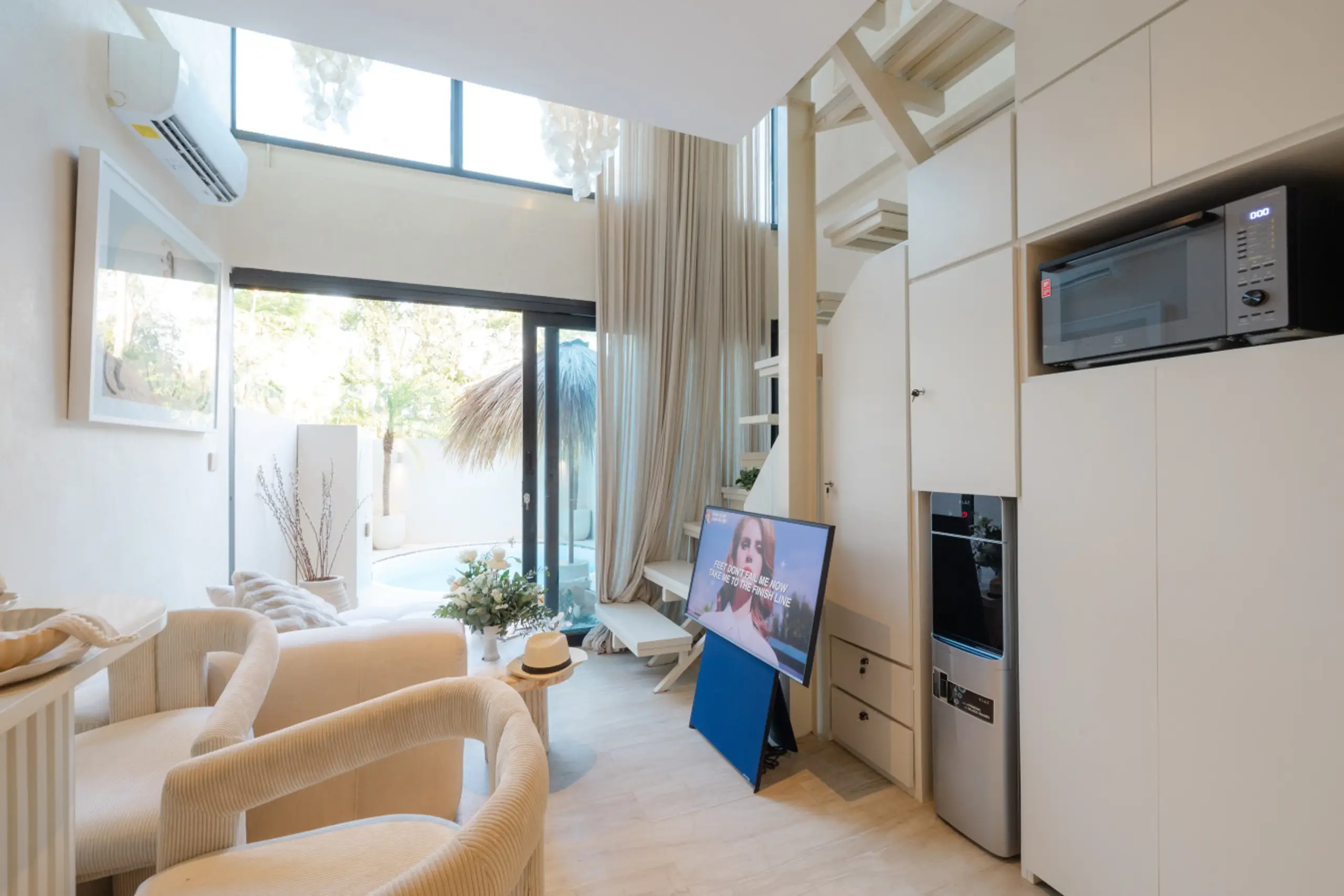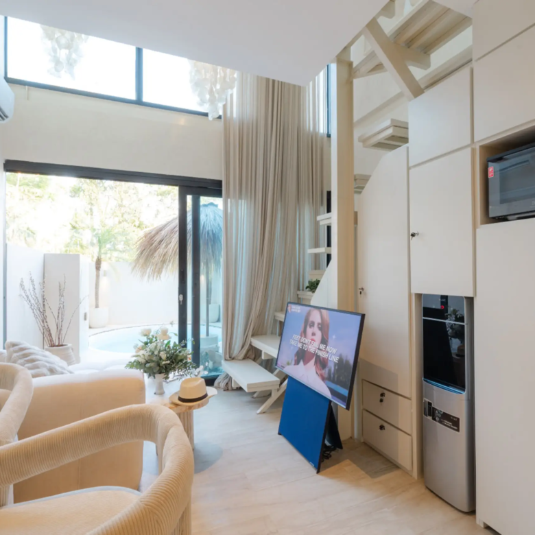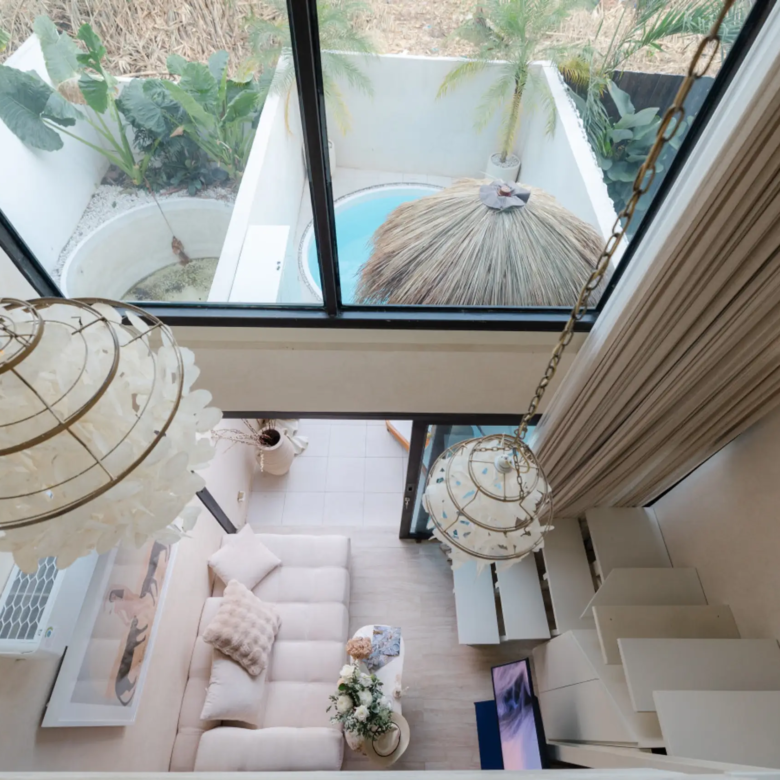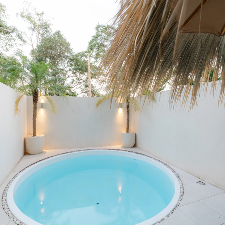 Step into Lumoo Loft, a designer sanctuary where modern luxury meets Bali charm. Crafted for discerning solo travelers or couples, this exclusive residence blends privacy, style, and sophistication in one of Canggu’s most coveted locations. The Location Nestled in a quiet laneway yet minutes from Canggu’s trendiest cafés, restaurants, and boutique stores, Lumoo Loft offers the perfect balance of tranquillity and convenience. Iconic sunset beaches Echo, Batu Bolong, and Pererenan are just a 10–15 minute scooter ride away. The Space Inside, the loft unfolds with soaring ceilings, curated interiors, and a sleek open-plan design. The living area is fully enclosed and air-conditioned for ultimate comfort, while contemporary furnishings and bespoke details create a warm, elevated atmosphere. Designer Loft Bedroom – Overlooking the living space, styled with luxe linens, ambient lighting, and custom storage. Modern Ensuite Bathroom – Elegant finishes, rain shower, and premium amenities. Fully Equipped Kitchen – Stove, fridge, cookware, dining ware, and water dispenser, perfect for extended stays. Dedicated Work/Dining Table – Ideal for remote workers or intimate dinners. Outdoor Retreat Step outside into your private tropical courtyard, where a sparkling plunge pool, sun loungers, and outdoor shower await. Whether it’s a morning coffee, an afternoon dip, or golden hour cocktails, this oasis is designed for indulgence. Villa Features • Private plunge pool in a fully walled tropical courtyard • Enclosed living area with air-conditioning & ceiling fans • Loft-style bedroom with premium queen bed & linens • Designer ensuite bathroom with rain shower & hot water • High-speed Wi-Fi perfect for digital nomads • Cleaning twice weekly & linen change once weekly • Scooter parking available • Villa manager available for assistance Guest Experience Guests love the seamless mix of comfort and location — minutes from Canggu’s best dining, gyms, yoga studios, co-working spaces, and world-class beach clubs. Batu Bolong, Echo, and Pererenan remain favourite beach day escapes. Whether you’re staying for a short retreat or an extended escape, Lumoo Loft redefines modern Bali living with an indulgent touch of luxury. Send us a message with any questions, we’re here to help make your stay unforgettable.