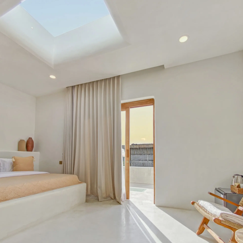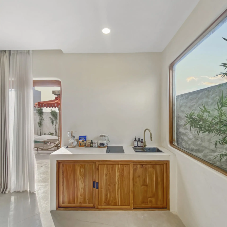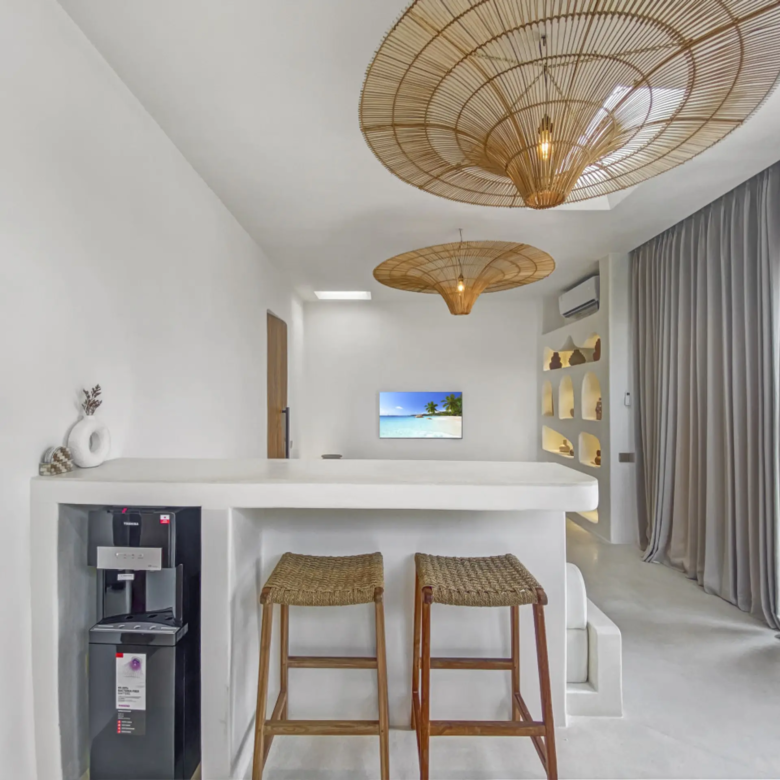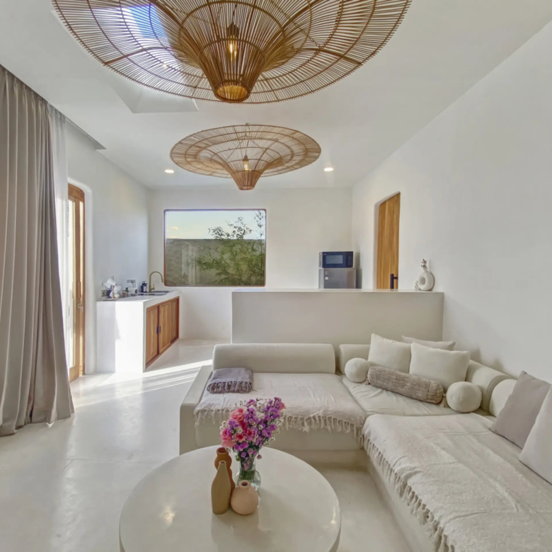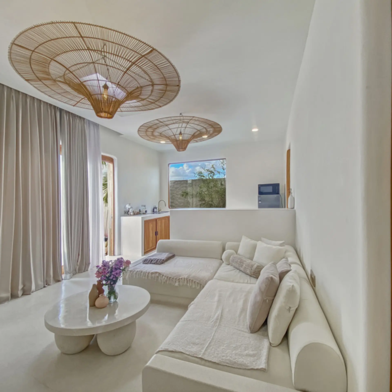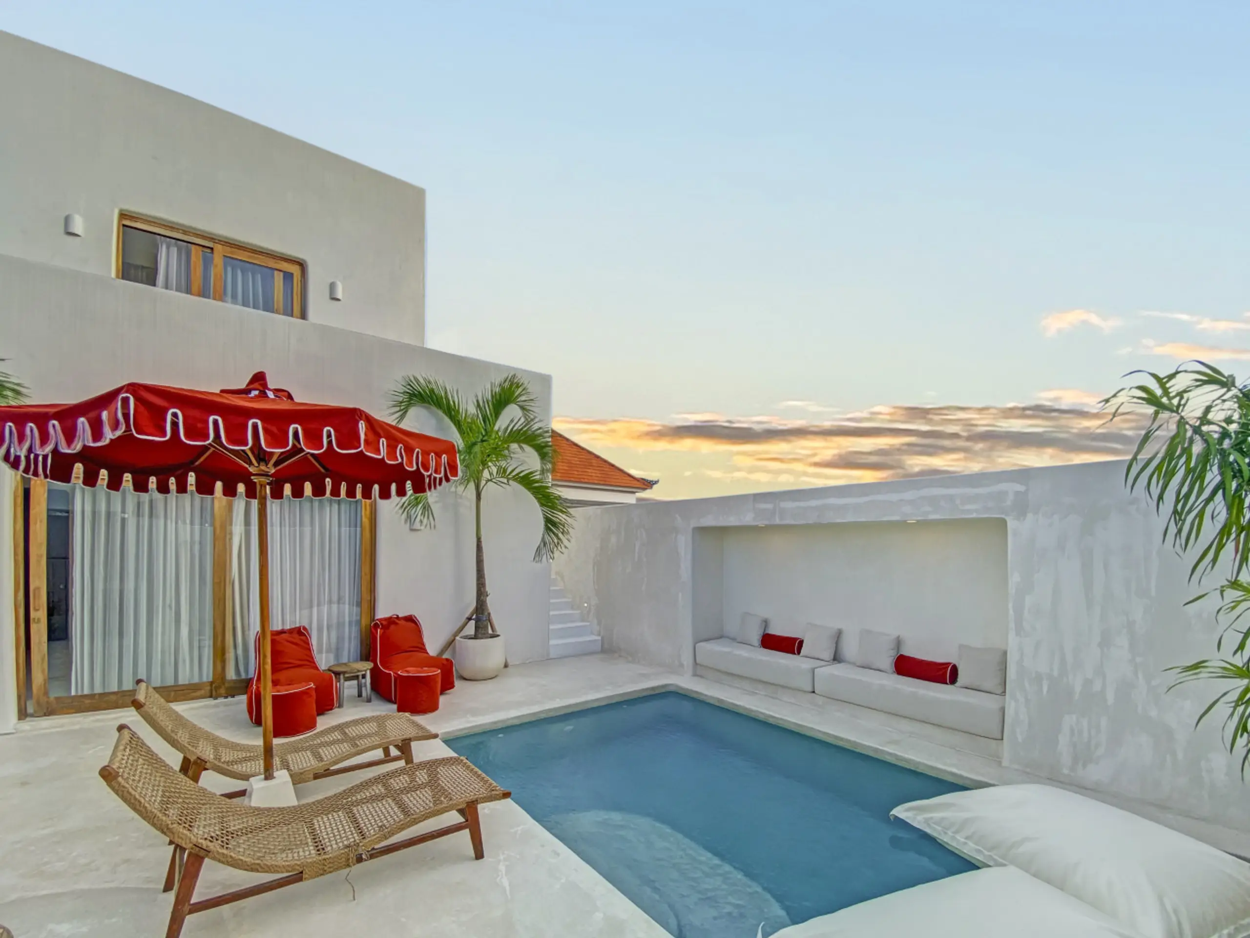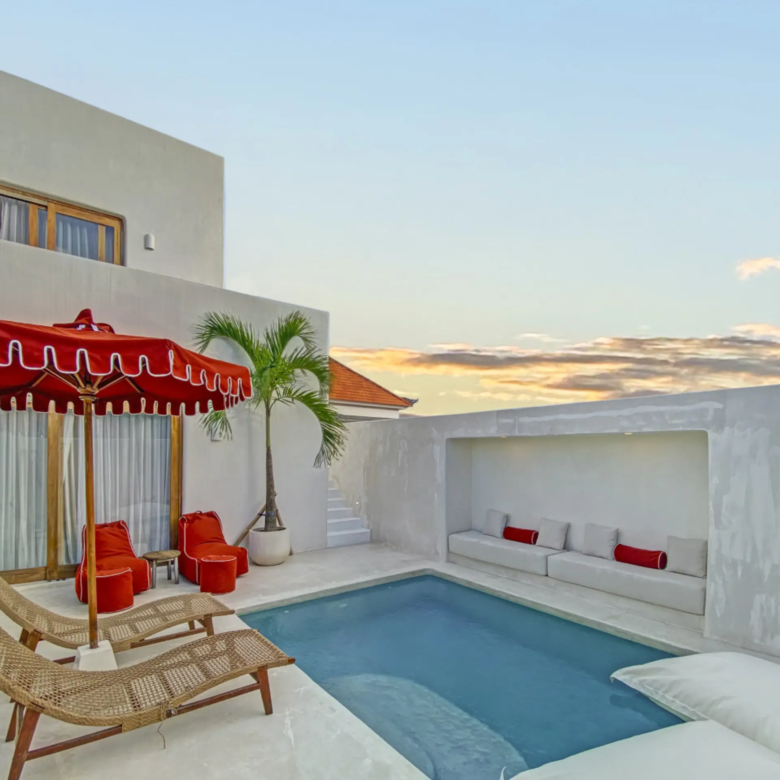 Luxury Private Villa in Munggu Designer Living with Pool Oasis Escape to your own private sanctuary in the peaceful coastal village of Munggu, just minutes from Bali’s best beaches and the buzz of Seseh and Canggu without the crowds. This architecturally designed villa blends clean Mediterranean-inspired lines with warm tropical textures, creating a space that feels both elevated and effortlessly relaxed. Step outside and you’re greeted by a stunning private pool framed by soft rendered walls, lush palms, and a statement red sun umbrella perfect for long afternoons lounging or sunset drinks. The built-in daybed and sun lounges create a true resort-style experience, completely private. Inside, the villa continues to impress with a light-filled open-plan living space. Neutral tones, custom furnishings, and oversized rattan feature lighting bring a soft, modern aesthetic that feels calm and curated. The fully equipped kitchen and spacious lounge make it ideal for both short stays and longer escapes. Highlights: Private swimming pool with sun loungers & daybed Designer interiors with high-end finishes Spacious open-plan living & fully equipped kitchen Large sliding doors for seamless indoor-outdoor flow Quiet, secure location in Munggu Close to beaches, cafes, and Canggu lifestyle hotspots Rooftop area perfect for sunset Whether you’re here to surf, unwind, or explore Bali’s west coast, this villa offers the perfect balance of privacy, style, and location. Perfect for couples, digital nomads, or families seeking a premium Bali stay.