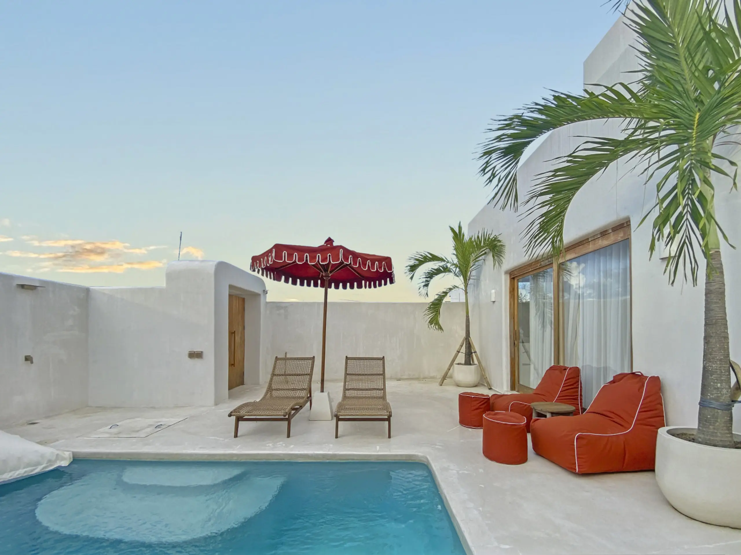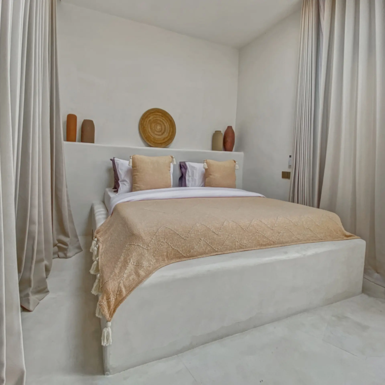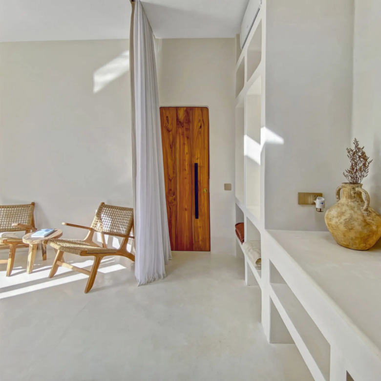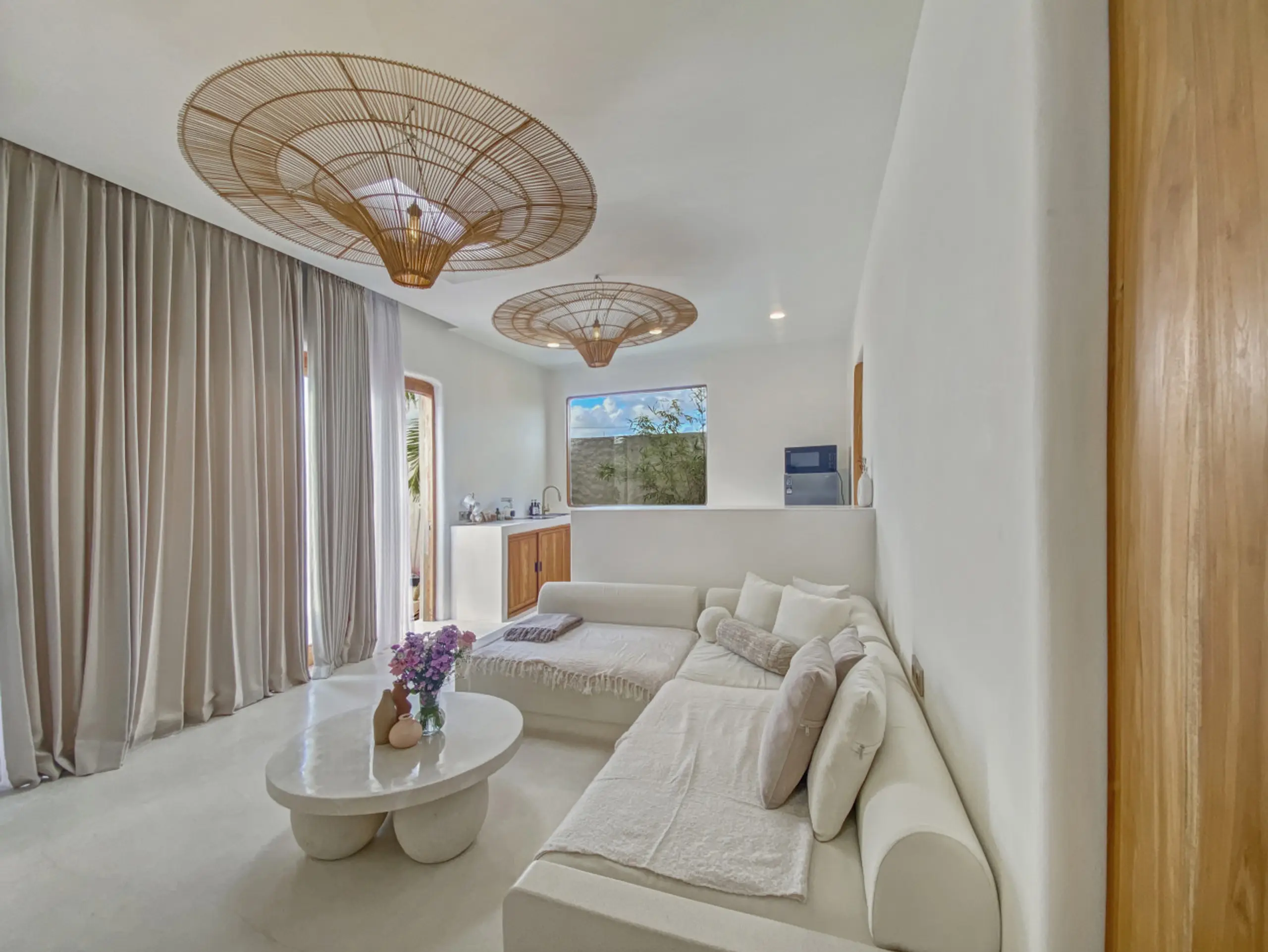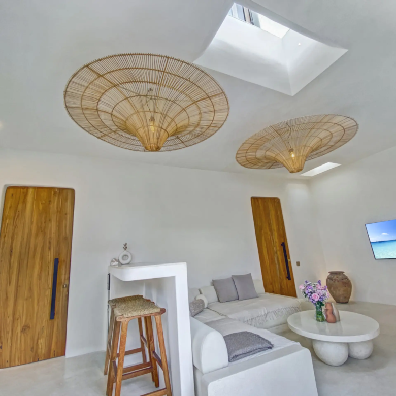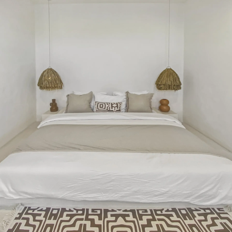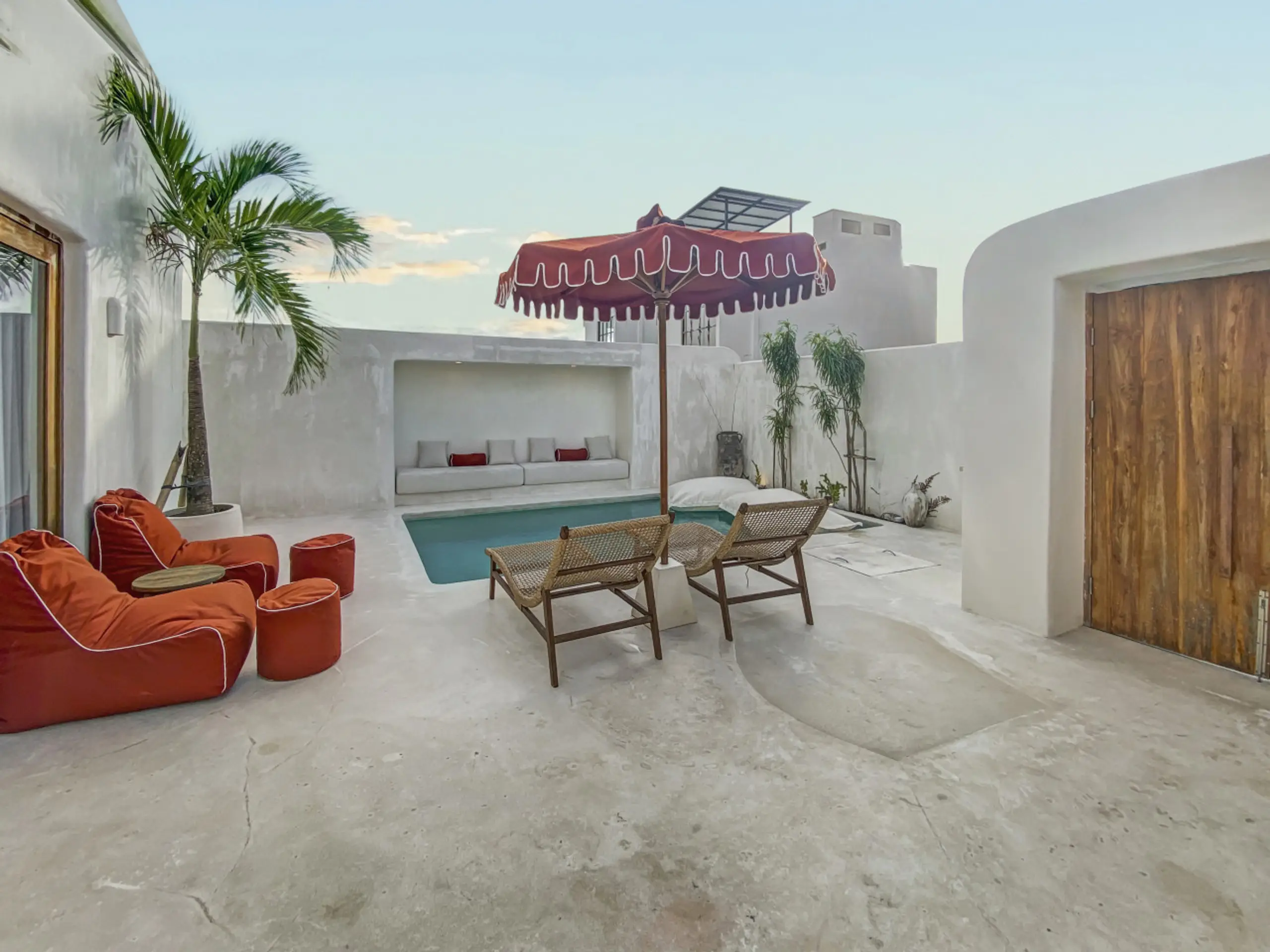 Luxury Private Villa in Munggu Designer Living with Pool Oasis Escape to your own private sanctuary in the peaceful coastal village of Munggu, just minutes from Bali’s best beaches and the buzz of Seseh and Canggu without the crowds. This architecturally designed villa blends clean Mediterranean-inspired lines with warm tropical textures, creating a space that feels both elevated and effortlessly relaxed. Step outside and you’re greeted by a stunning private pool framed by soft rendered walls, lush palms, and a statement red sun umbrella perfect for long afternoons lounging or sunset drinks. The built-in daybed and sun lounges create a true resort-style experience, completely private. Inside, the villa continues to impress with a light-filled open-plan living space. Neutral tones, custom furnishings, and oversized rattan feature lighting bring a soft, modern aesthetic that feels calm and curated. The fully equipped kitchen and spacious lounge make it ideal for both short stays and longer escapes. Highlights: Private swimming pool with sun loungers & daybed Designer interiors with high-end finishes Spacious open-plan living & fully equipped kitchen Large sliding doors for seamless indoor-outdoor flow Quiet, secure location in Munggu Close to beaches, cafes, and Canggu lifestyle hotspots Rooftop area perfect for sunset Whether you’re here to surf, unwind, or explore Bali’s west coast, this villa offers the perfect balance of privacy, style, and location. Perfect for couples, digital nomads, or families seeking a premium Bali stay.