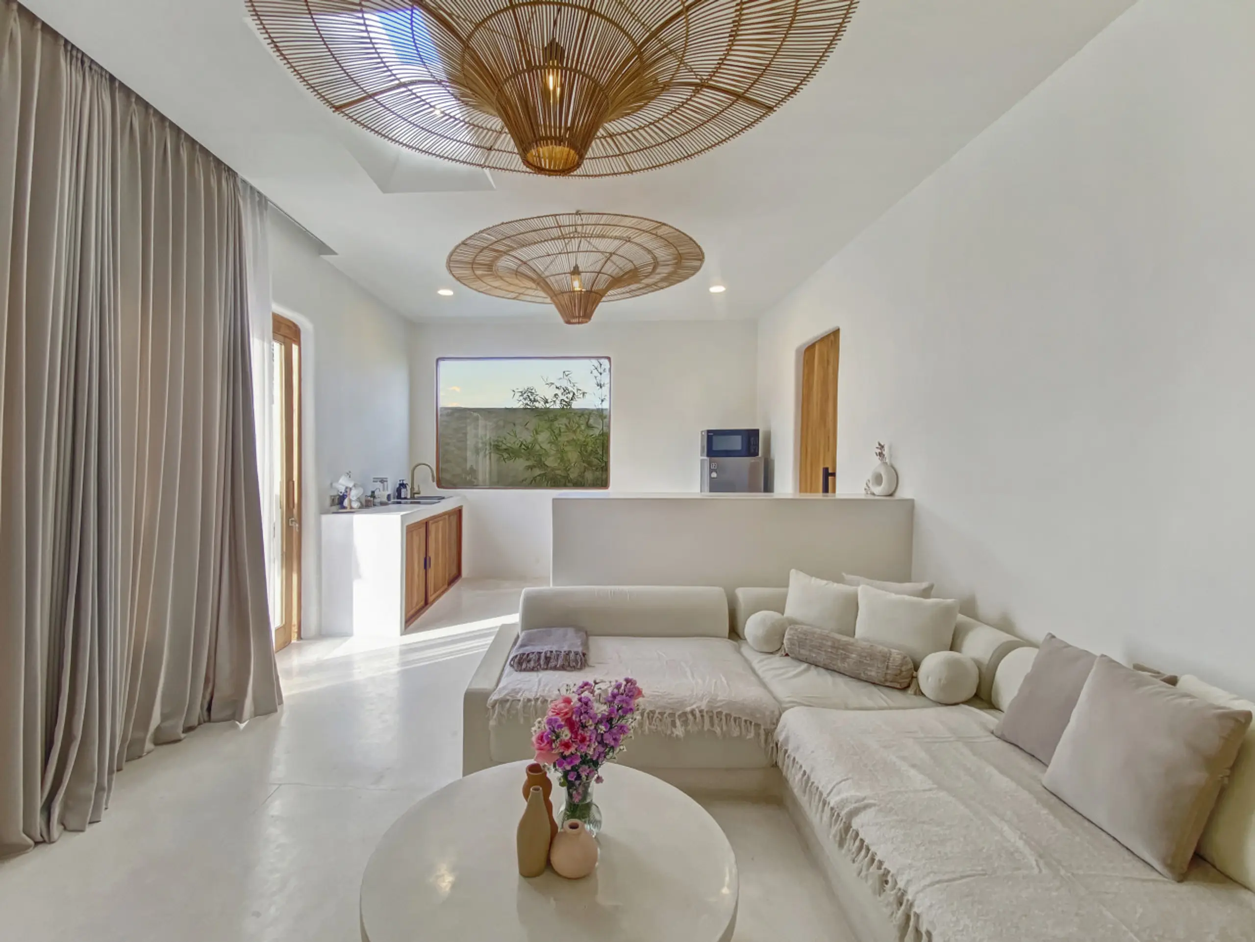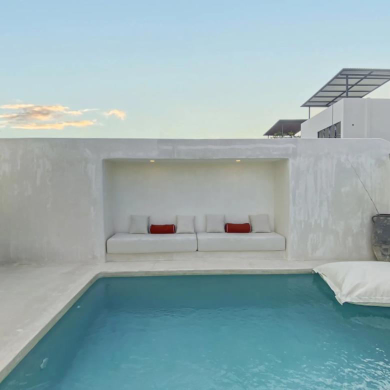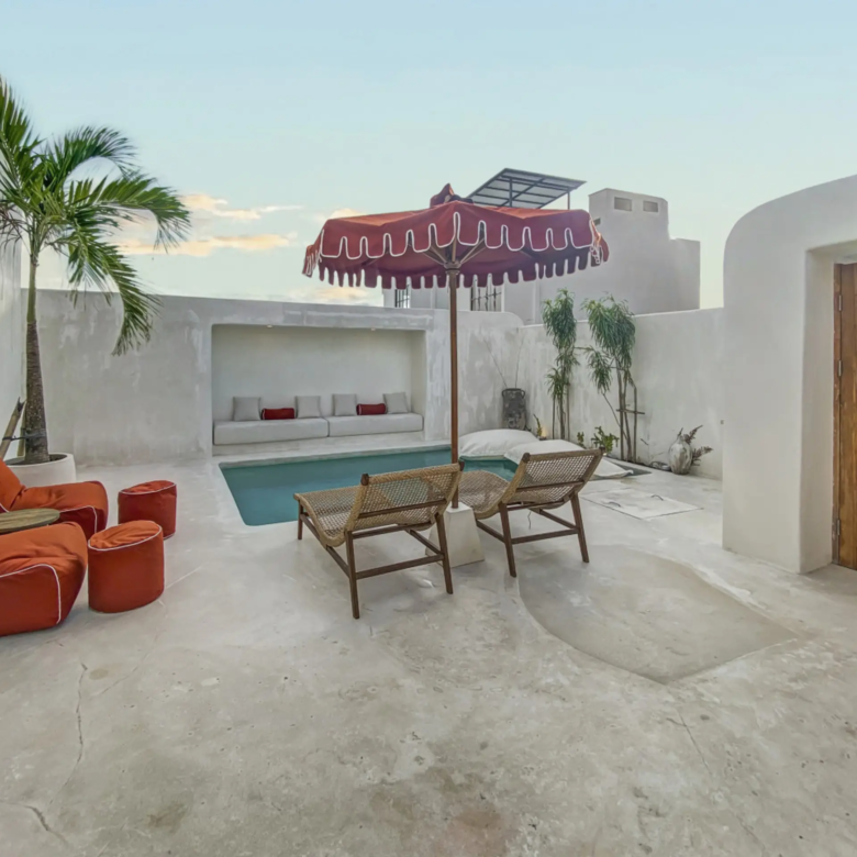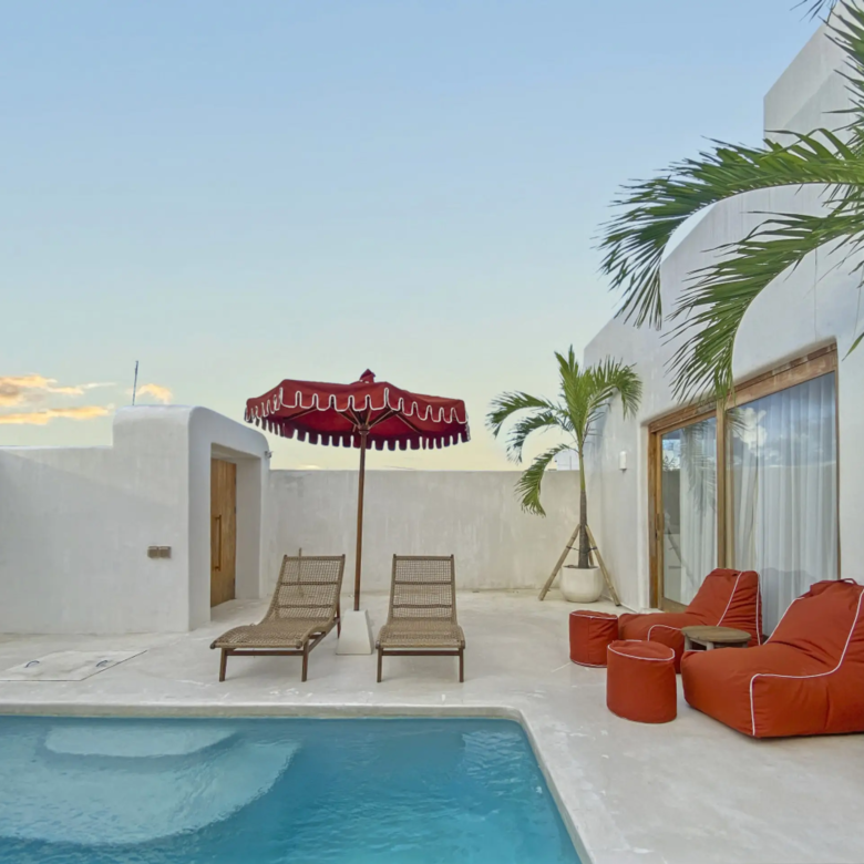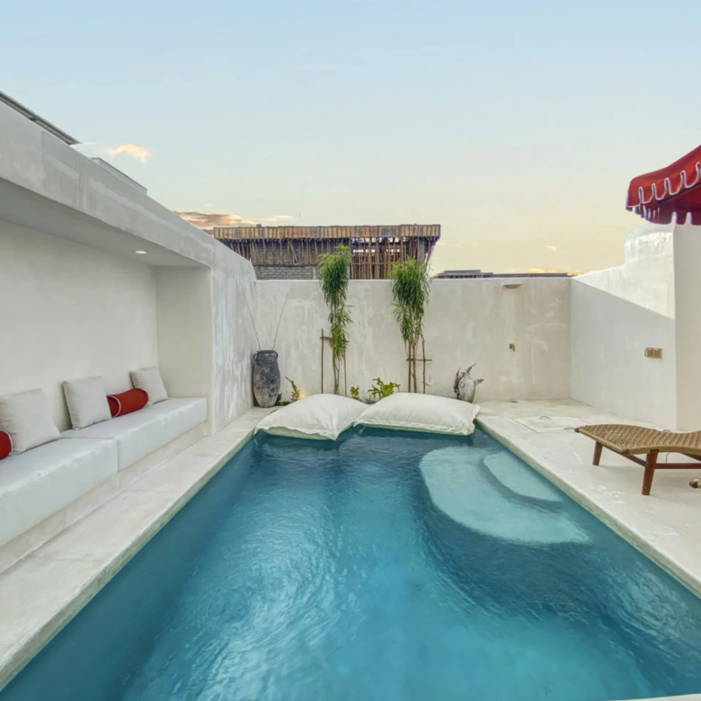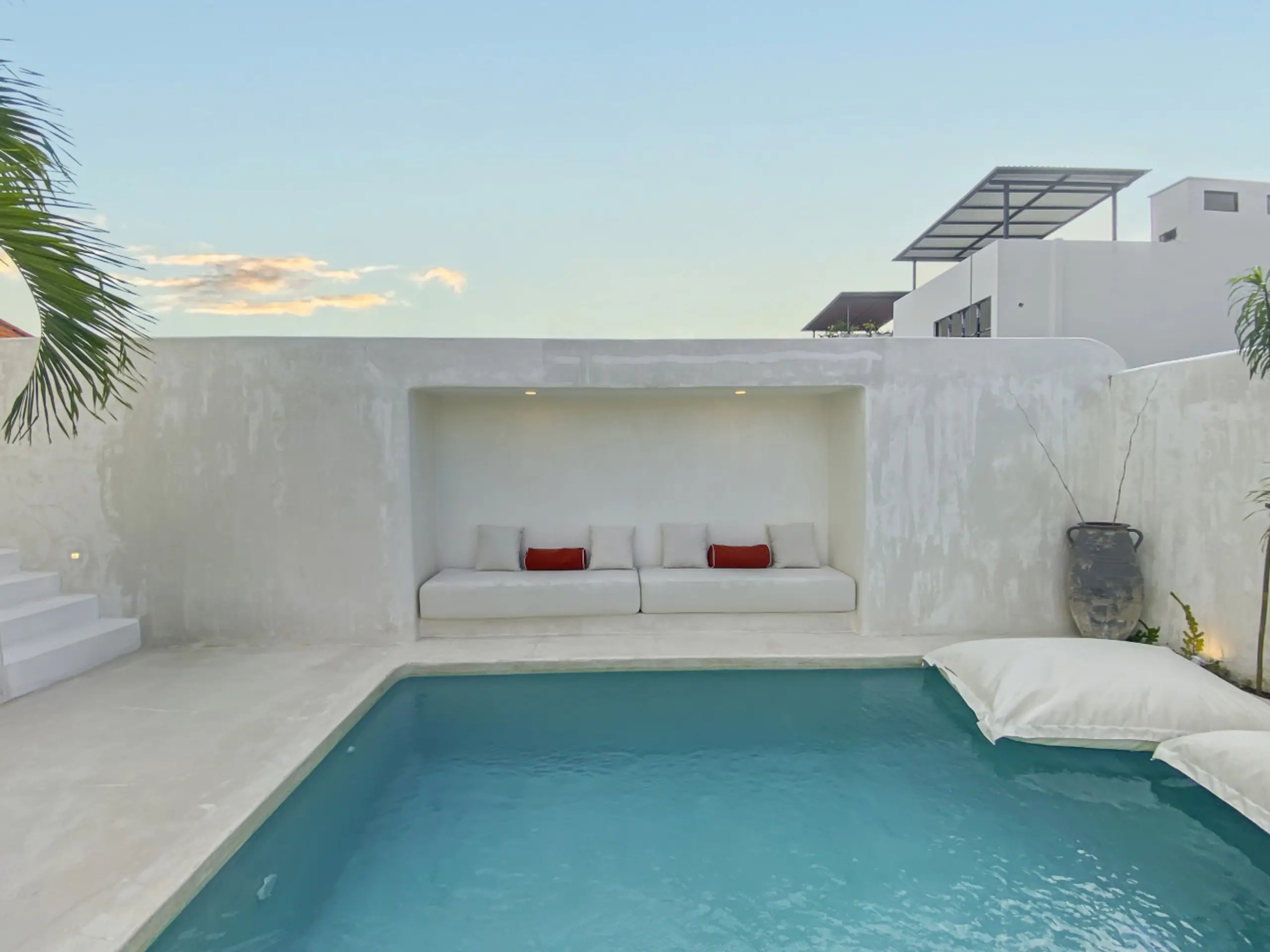 Luxury Private Villa in Munggu Designer Living with Pool Oasis Escape to your own private sanctuary in the peaceful coastal village of Munggu, just minutes from Bali’s best beaches and the buzz of Seseh and Canggu without the crowds. This architecturally designed villa blends clean Mediterranean-inspired lines with warm tropical textures, creating a space that feels both elevated and effortlessly relaxed. Step outside and you’re greeted by a stunning private pool framed by soft rendered walls, lush palms, and a statement red sun umbrella perfect for long afternoons lounging or sunset drinks. The built-in daybed and sun lounges create a true resort-style experience, completely private. Inside, the villa continues to impress with a light-filled open-plan living space. Neutral tones, custom furnishings, and oversized rattan feature lighting bring a soft, modern aesthetic that feels calm and curated. The fully equipped kitchen and spacious lounge make it ideal for both short stays and longer escapes. Highlights: Private swimming pool with sun loungers & daybed Designer interiors with high-end finishes Spacious open-plan living & fully equipped kitchen Large sliding doors for seamless indoor-outdoor flow Quiet, secure location in Munggu Close to beaches, cafes, and Canggu lifestyle hotspots Rooftop area perfect for sunset Whether you’re here to surf, unwind, or explore Bali’s west coast, this villa offers the perfect balance of privacy, style, and location. Perfect for couples, digital nomads, or families seeking a premium Bali stay.