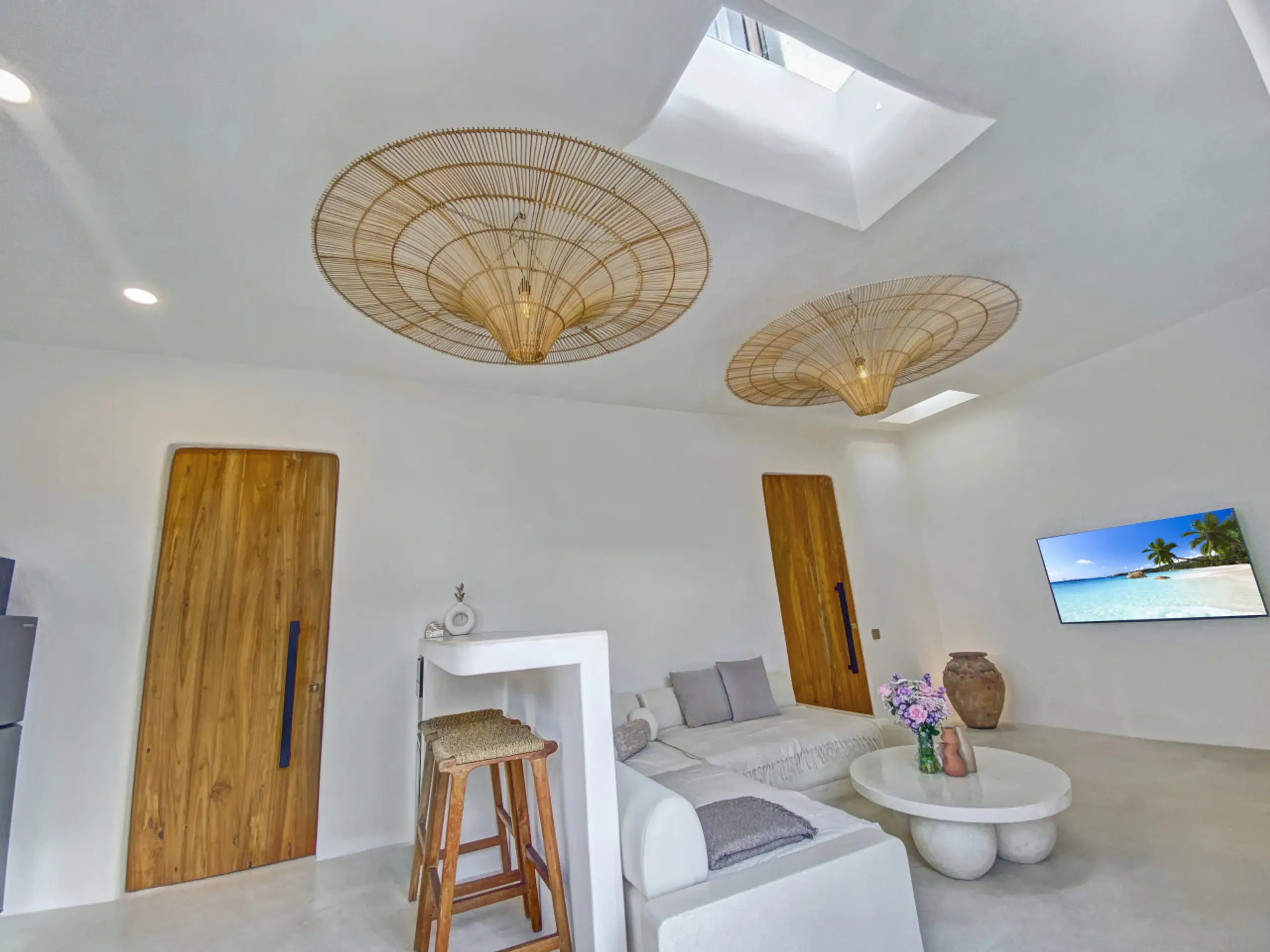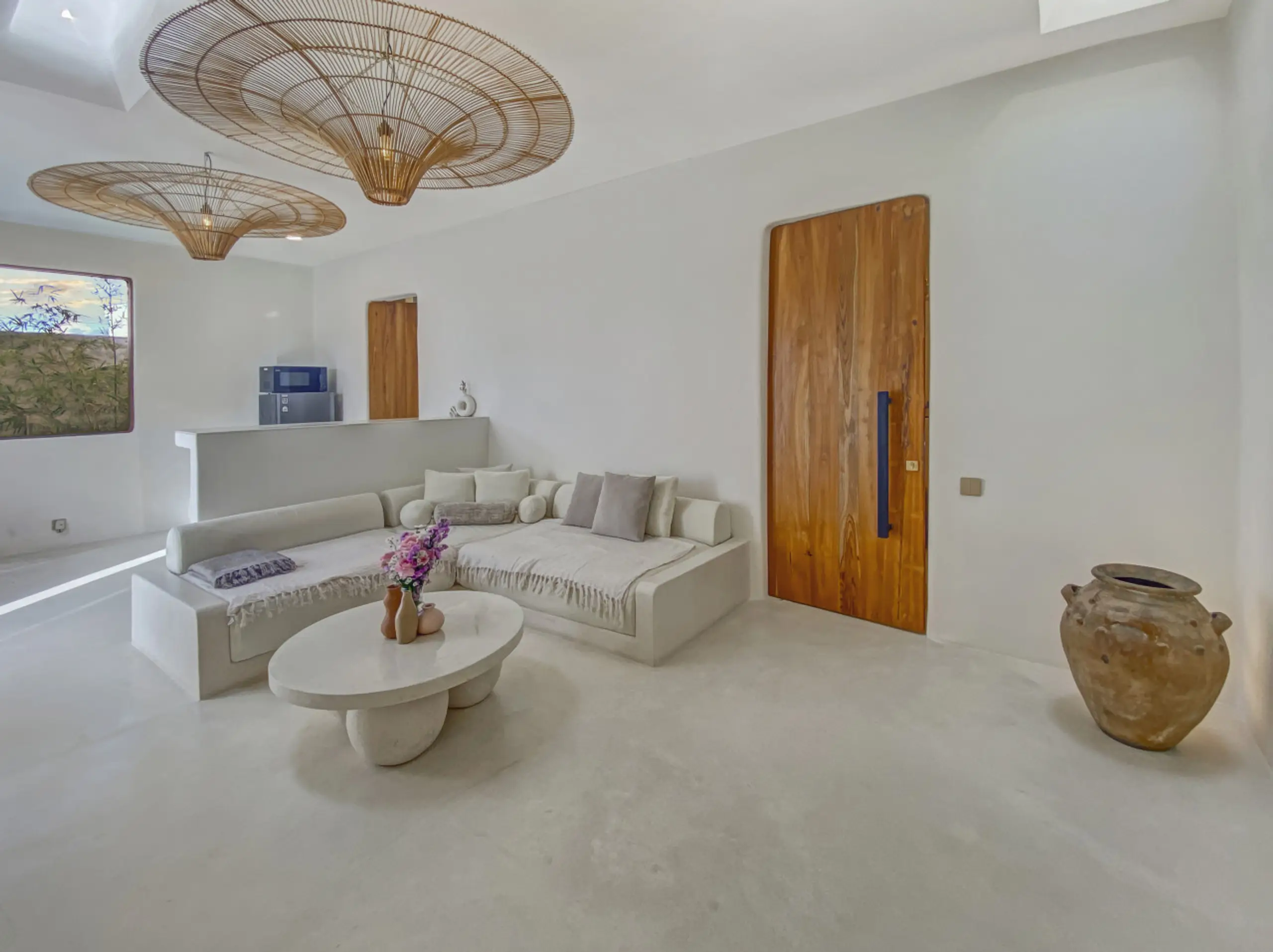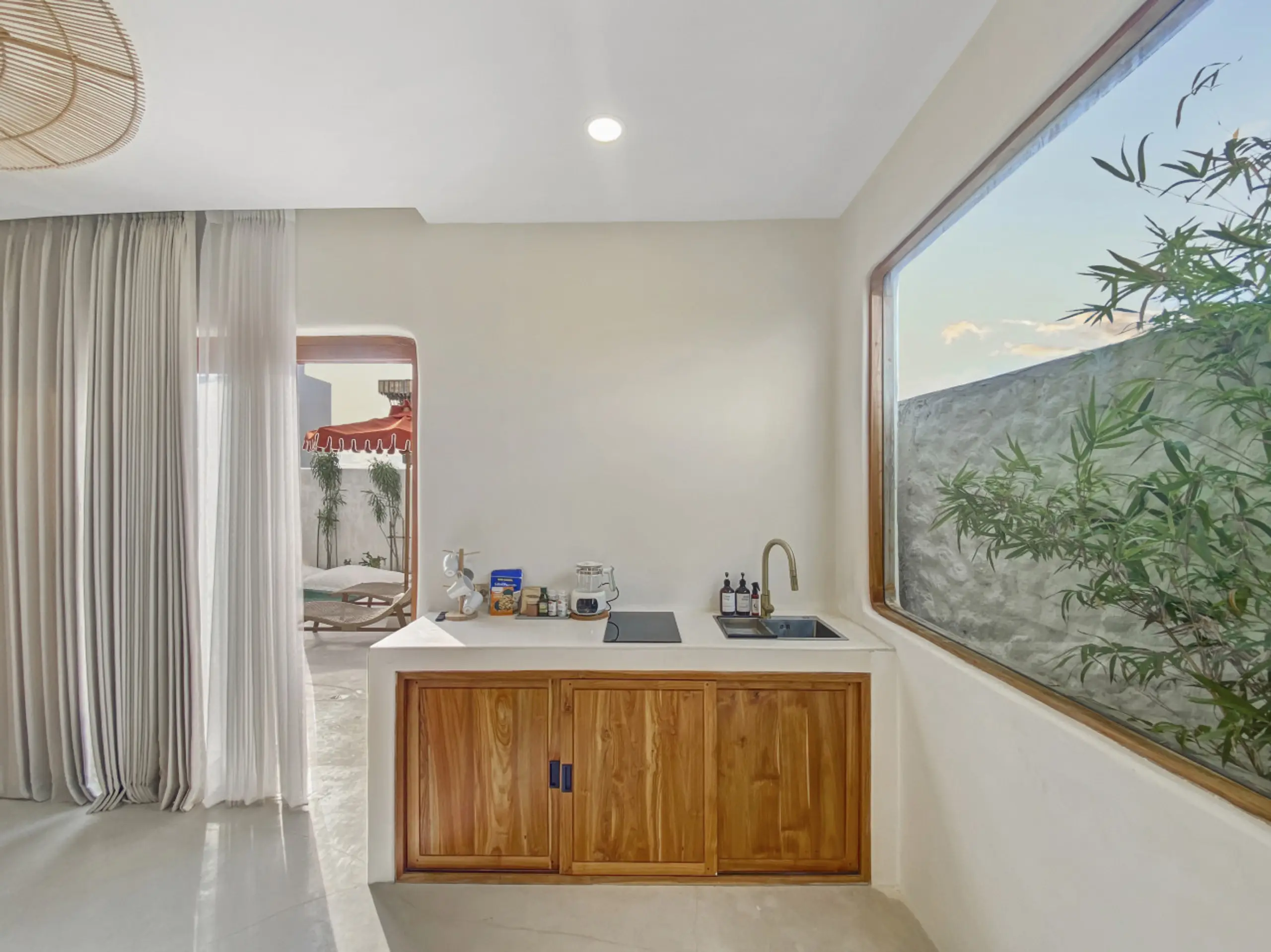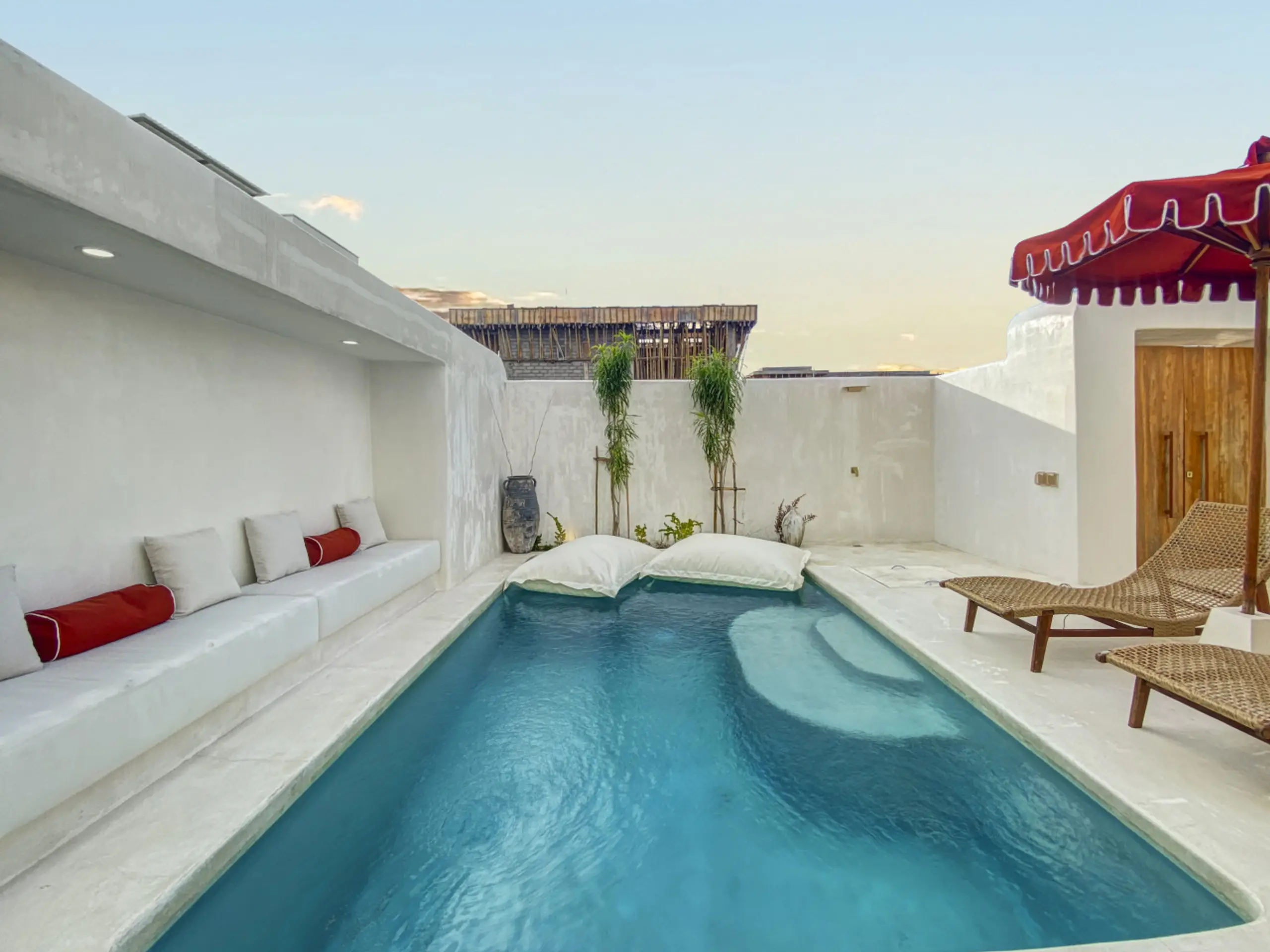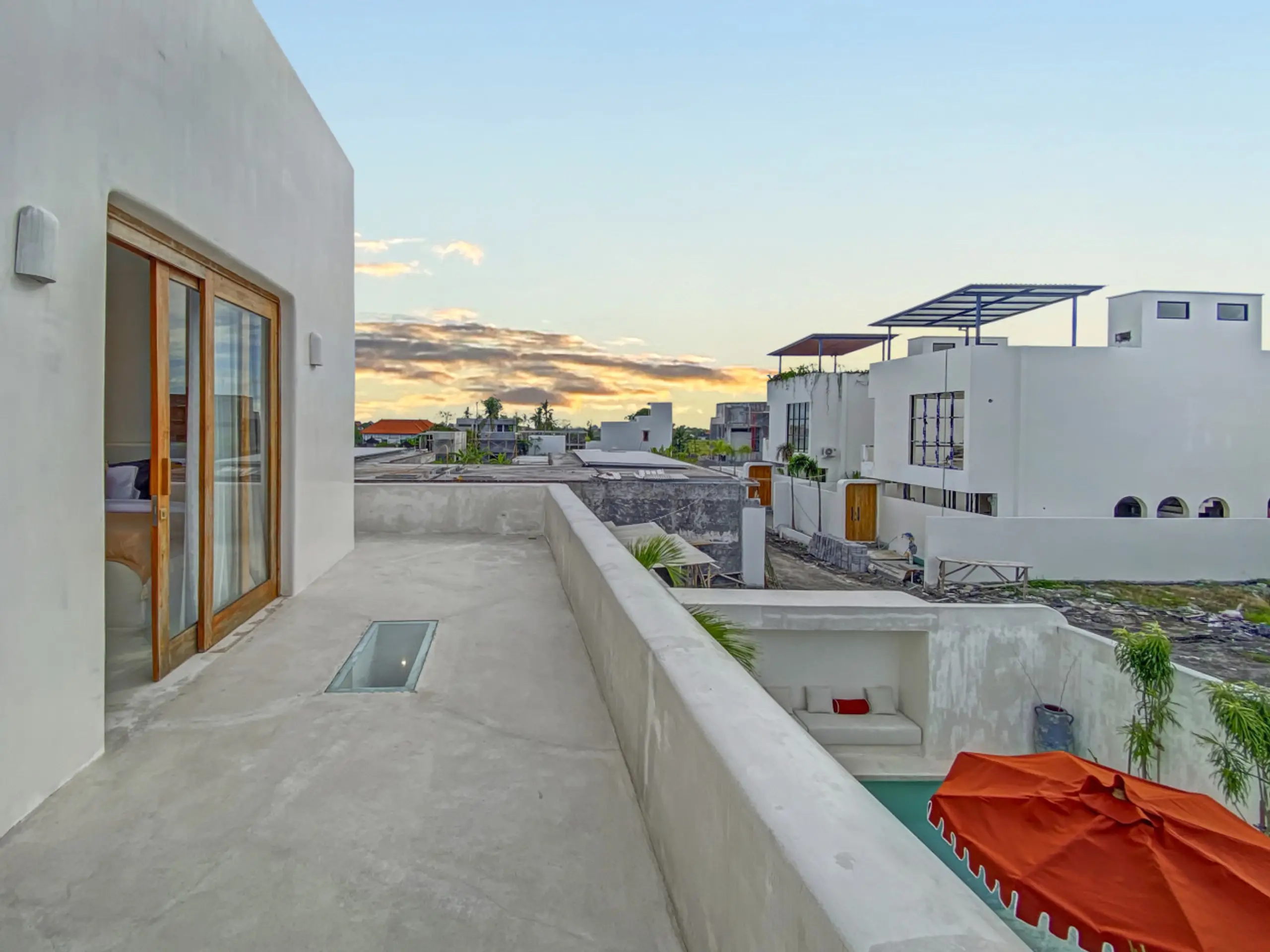 Luxury Private Villa in Munggu Designer Living with Pool Oasis Escape to your own private sanctuary in the peaceful coastal village of Munggu, just minutes from Bali’s best beaches and the buzz of Seseh and Canggu without the crowds. This architecturally designed villa blends clean Mediterranean-inspired lines with warm tropical textures, creating a space that feels both elevated and effortlessly relaxed. Step outside and you’re greeted by a stunning private pool framed by soft rendered walls, lush palms, and a statement red sun umbrella perfect for long afternoons lounging or sunset drinks. The built-in daybed and sun lounges create a true resort-style experience, completely private. Inside, the villa continues to impress with a light-filled open-plan living space. Neutral tones, custom furnishings, and oversized rattan feature lighting bring a soft, modern aesthetic that feels calm and curated. The fully equipped kitchen and spacious lounge make it ideal for both short stays and longer escapes. Highlights: Private swimming pool with sun loungers & daybed Designer interiors with high-end finishes Spacious open-plan living & fully equipped kitchen Large sliding doors for seamless indoor-outdoor flow Quiet, secure location in Munggu Close to beaches, cafes, and Canggu lifestyle hotspots Rooftop area perfect for sunset Whether you’re here to surf, unwind, or explore Bali’s west coast, this villa offers the perfect balance of privacy, style, and location. Perfect for couples, digital nomads, or families seeking a premium Bali stay.