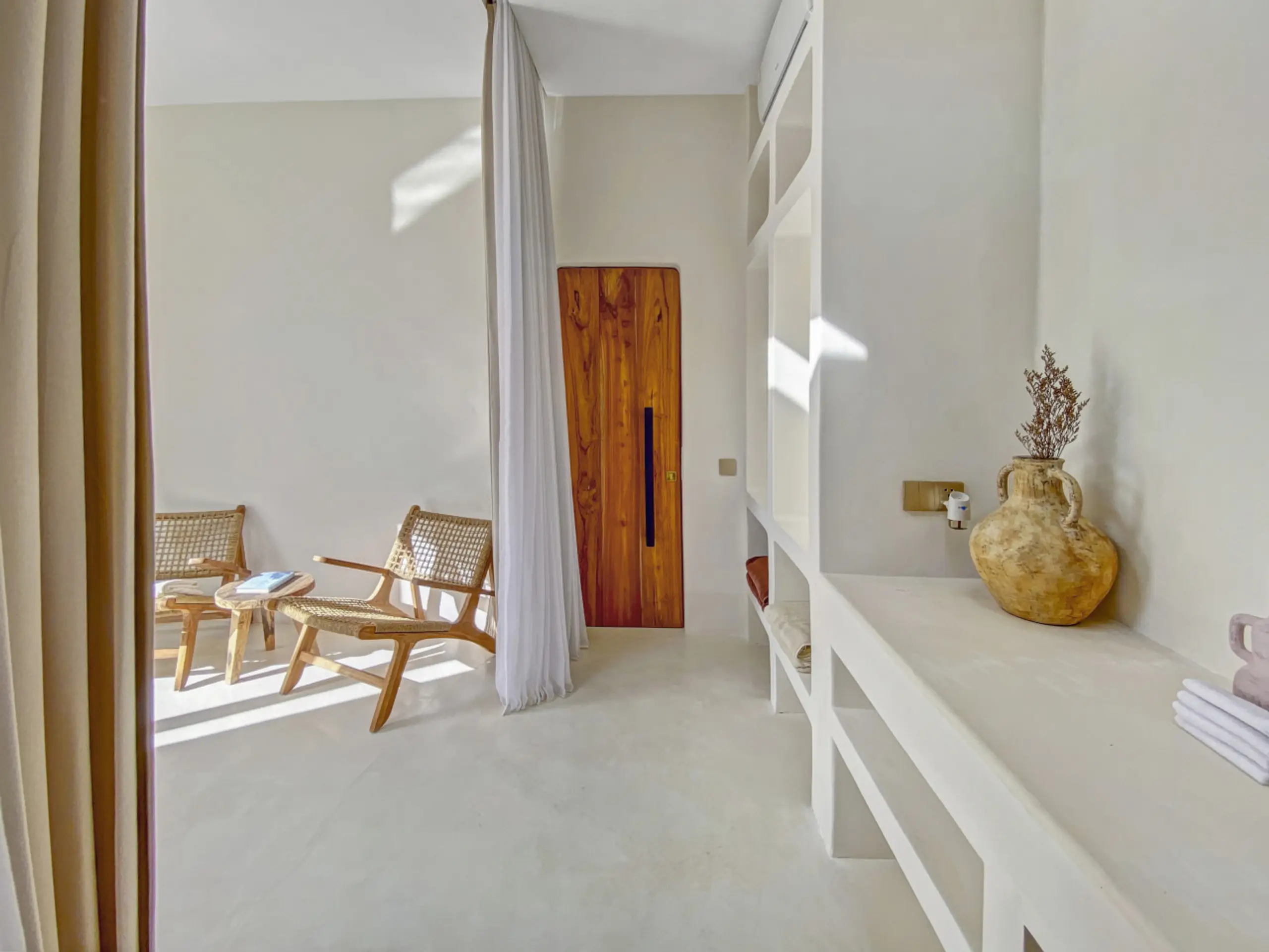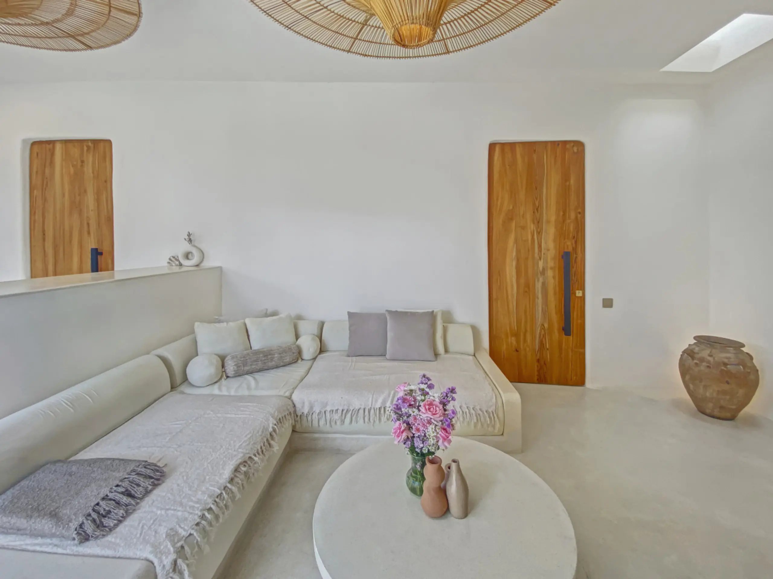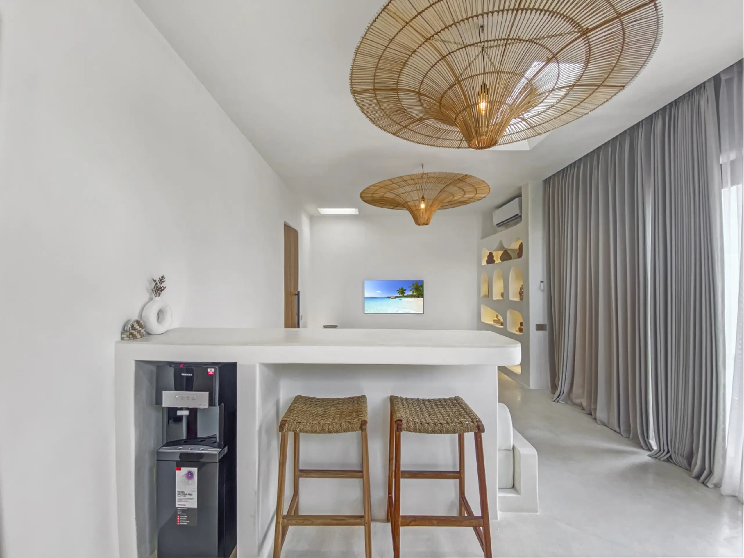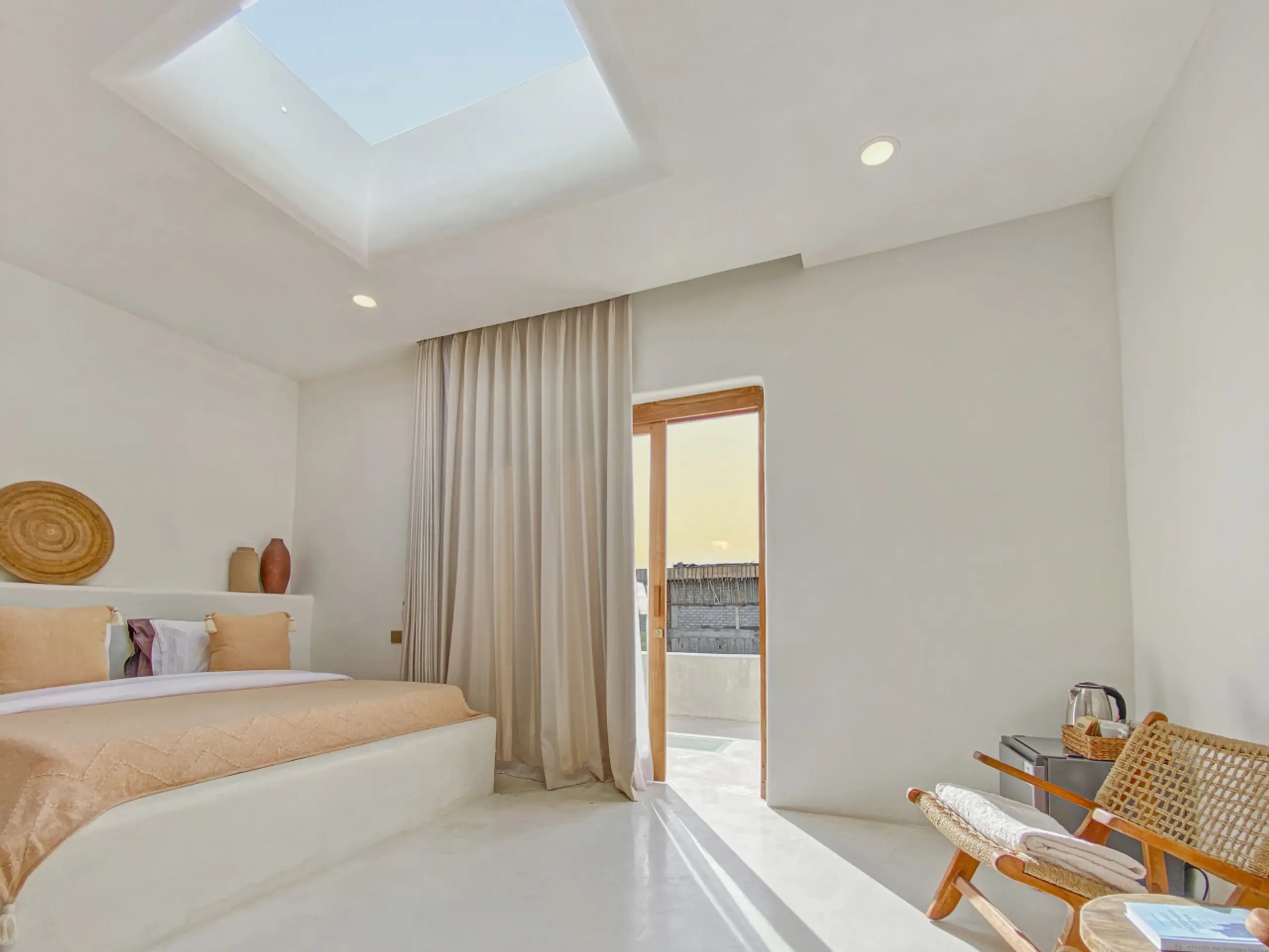 Luxury Private Villa in Munggu Designer Living with Pool Oasis Escape to your own private sanctuary in the peaceful coastal village of Munggu, just minutes from Bali’s best beaches and the buzz of Seseh and Canggu without the crowds. This architecturally designed villa blends clean Mediterranean-inspired lines with warm tropical textures, creating a space that feels both elevated and effortlessly relaxed. Step outside and you’re greeted by a stunning private pool framed by soft rendered walls, lush palms, and a statement red sun umbrella perfect for long afternoons lounging or sunset drinks. The built-in daybed and sun lounges create a true resort-style experience, completely private. Inside, the villa continues to impress with a light-filled open-plan living space. Neutral tones, custom furnishings, and oversized rattan feature lighting bring a soft, modern aesthetic that feels calm and curated. The fully equipped kitchen and spacious lounge make it ideal for both short stays and longer escapes. Highlights: Private swimming pool with sun loungers & daybed Designer interiors with high-end finishes Spacious open-plan living & fully equipped kitchen Large sliding doors for seamless indoor-outdoor flow Quiet, secure location in Munggu Close to beaches, cafes, and Canggu lifestyle hotspots Rooftop area perfect for sunset Whether you’re here to surf, unwind, or explore Bali’s west coast, this villa offers the perfect balance of privacy, style, and location. Perfect for couples, digital nomads, or families seeking a premium Bali stay.